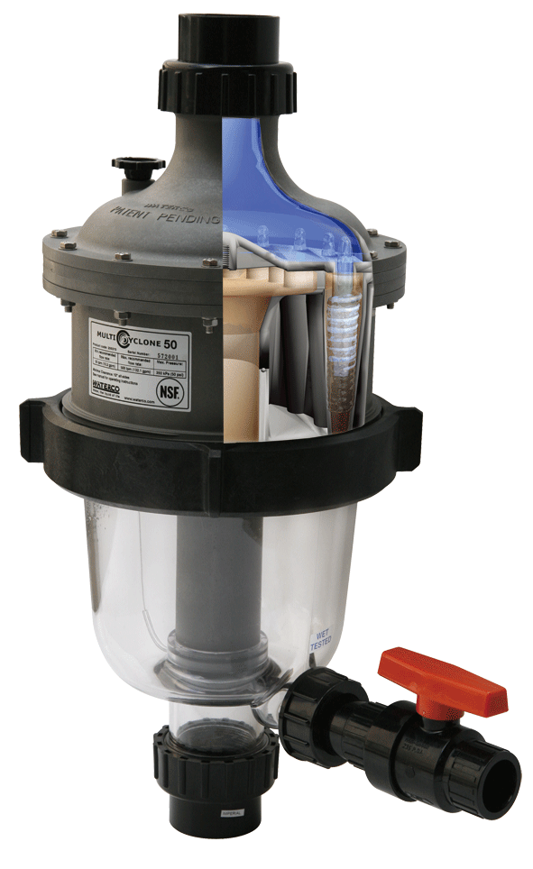 The MultiCyclone M16 is a pre-filtration device that works on the basis of centrifugal water filtration.