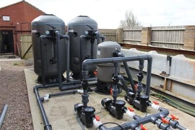 1050 fibreglass filters, three Hydrotuf pumps and