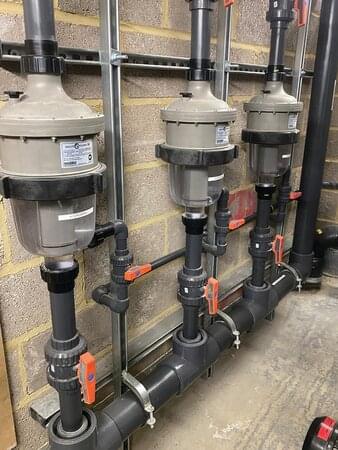 Waterco equipment: 2 x 1200mm SMDD Filters, 2 x Hydrostar MK4 Commercial Pumps, 2 x Pump Variable Frequency Drives and 2 x MC16 MultiCyclones