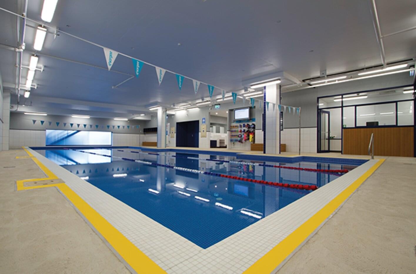 Covered with stunning Ezarri Glass Mosaic tiles and holding 166,000 litres of water, the 17.5m x 7m edge-to-edge pool is heated to 32 degrees whilst the air is temperature controlled to 24 degrees. This provides a comfortable environment for parents, swimmers and instructors year-round.