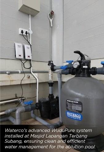 maintenance and cleanliness of the ablution pool. They highlight that the advanced filtration system greatly reduces the amount of water required for cleaning, aligning