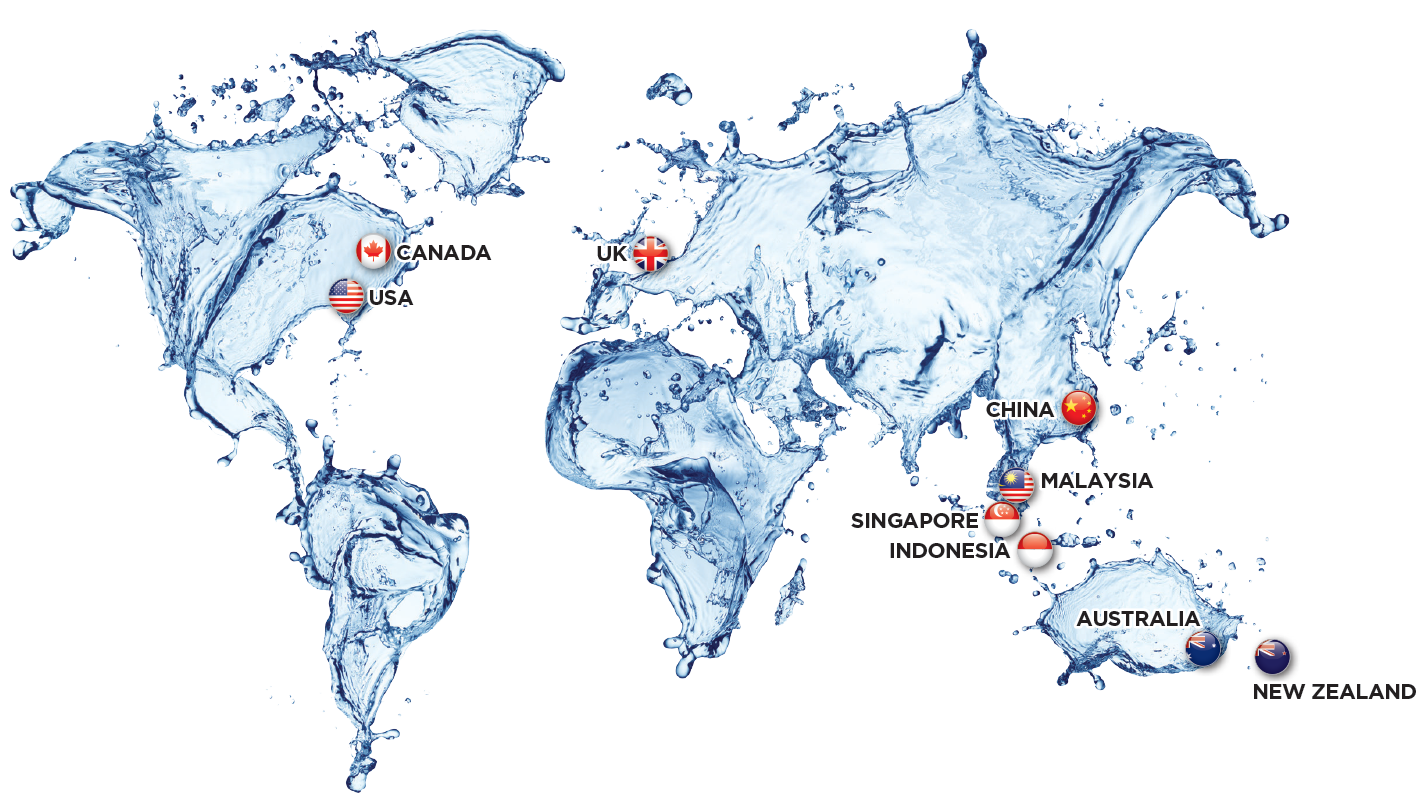 Today, Waterco exports to over 40 countries and has branches operating in Australia, New Zealand, Malaysia, China, The United Kingdom, United States of America, Canada and Indonesia.