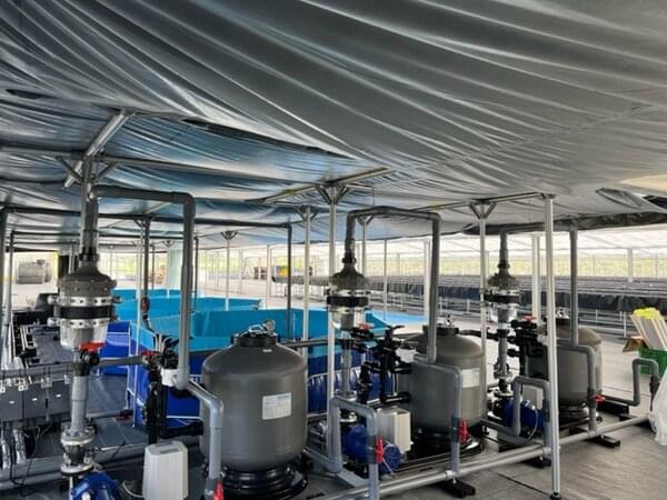 Aquabiome ASM600, MultiCyclone 16 and UV Solclear installed at Aquponi’s sturgeon and tilapia farm.