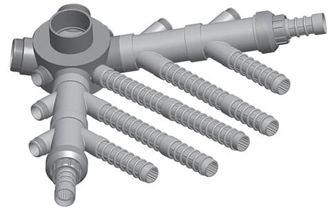 Waterco’s unique “fish tail” or “fish bone” lateral configuration eliminates this problem by providing effective coverage of the filter bed and balanced water flow.