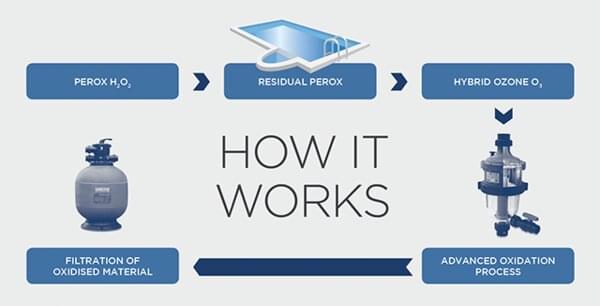 Hydroxypure sanitisation is based on the Advance Oxidation Process. (AOP), which combines Perox, a chlorine free sanitiser (H2O2) and hybrid ozone (O3) to create one of the most powerful oxidisers in nature.