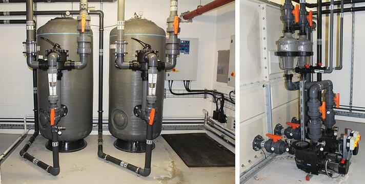 “Consequently, there are two separate plantrooms accommodating the following filtration and sanitisation equipment,” he says.