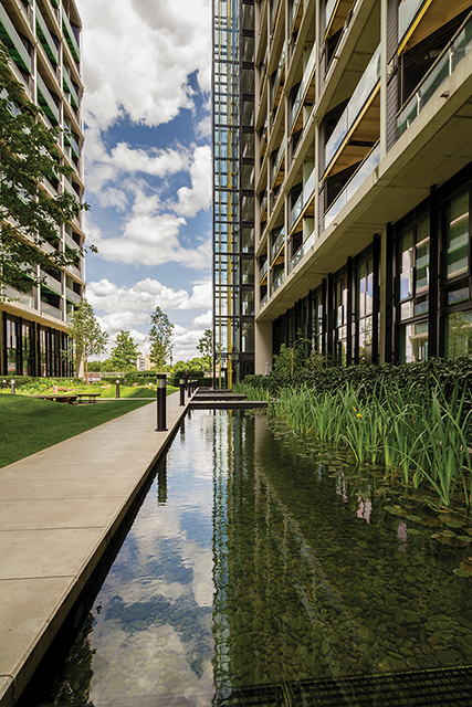 With roughly 60 per cent of the £200 million scheme designated as public open space, the landscaping needed to have its own distinct character and attract visitors by animating outdoor areas with a series of water features.