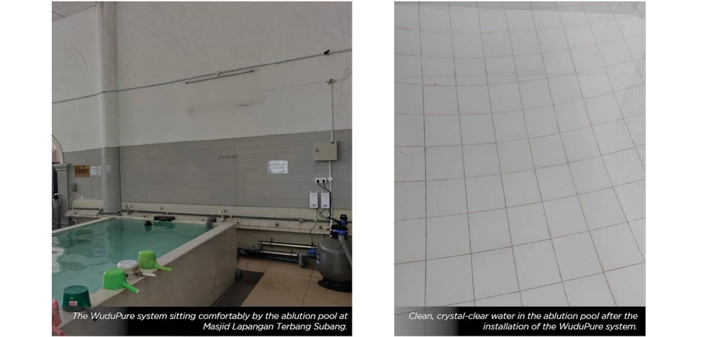 Additionally, the efficient operation of the WuduPure system reduces the frequency and effort needed for pool maintenance, allowing mosque staff to focus on other